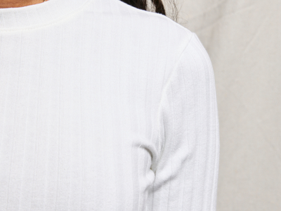 our heritage rib. soft 8×8 wide-rib cotton with a touch of stretch. creates a subtly textured, form-skimming silhouette with a vintage-inspired feel.